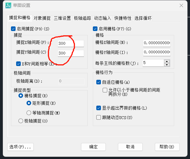 中望CAD草图设置中的捕捉间距参数修改不了,什么原因